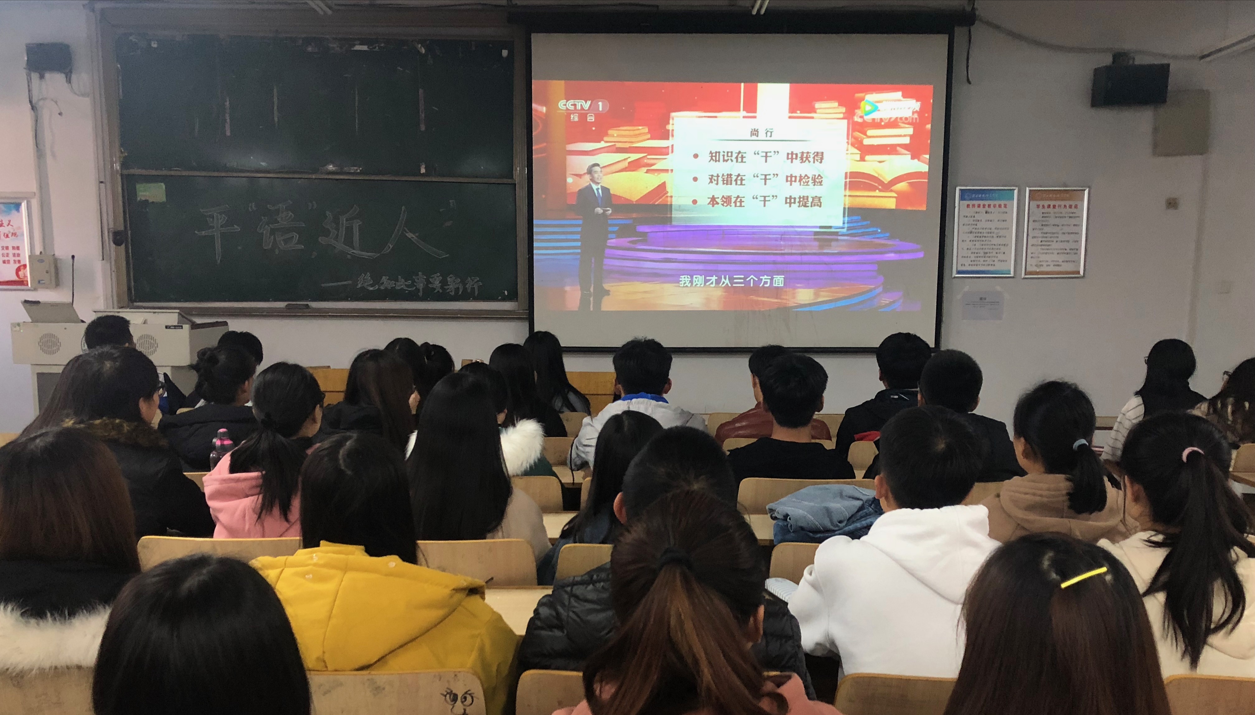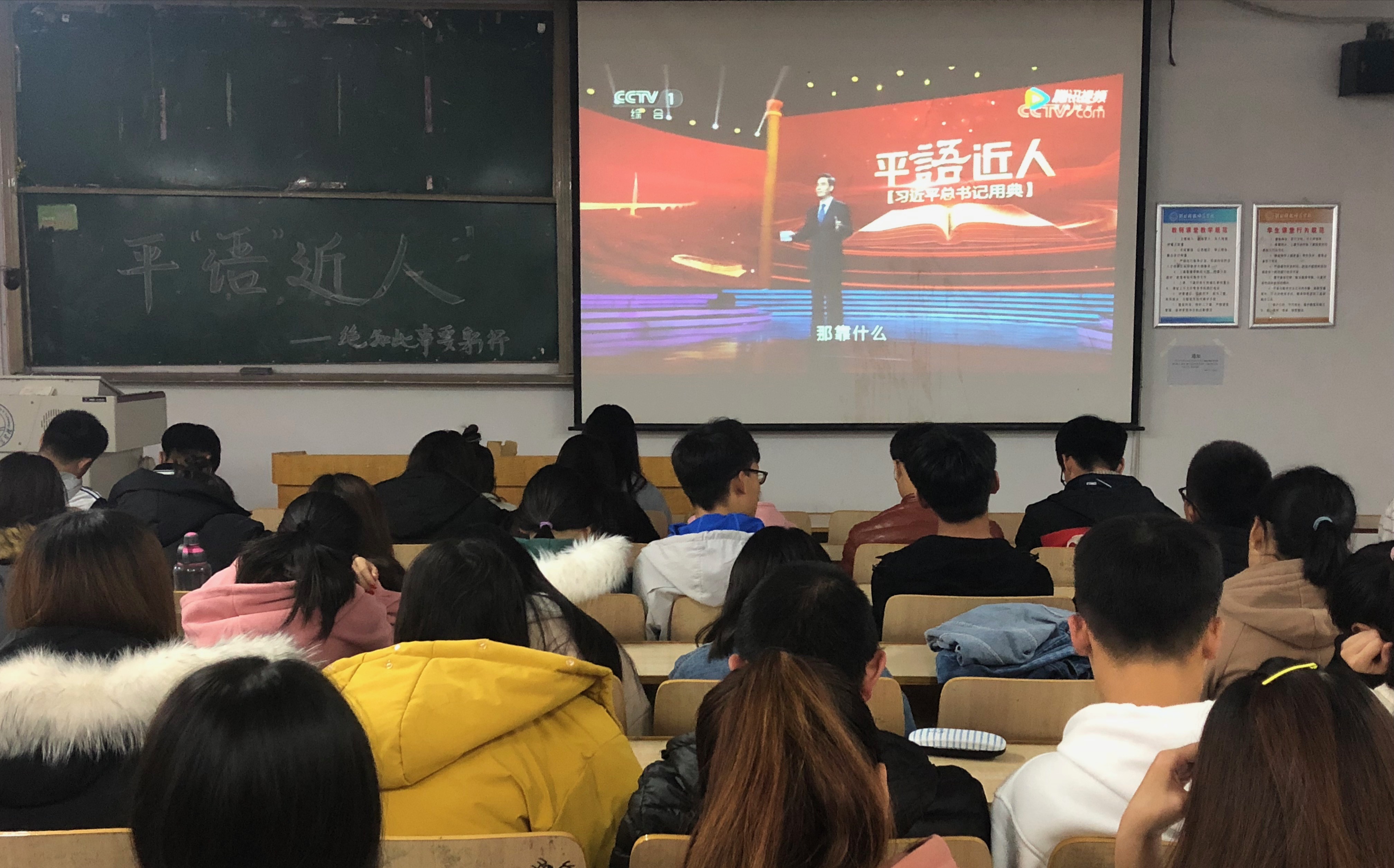 为不断把学习十九大活动引向深入,进一步推动习近平新时代中国特色社会思想的生动阐释与广泛传播。2018年11月10日,Beat365唯一官方网站党委分两场组织学生党组织、学生班团组织近280名青年学生党员、入党积极分子、共青团员等学习收看了中共中央宣传部、中央广播电视总台联合创作的《百家讲坛》特别节目《平“语”近人——习近平总书记用典》。在学院广大青年学生中营造浓厚的学习习近平新时代中国特色社会主义思想的氛围。