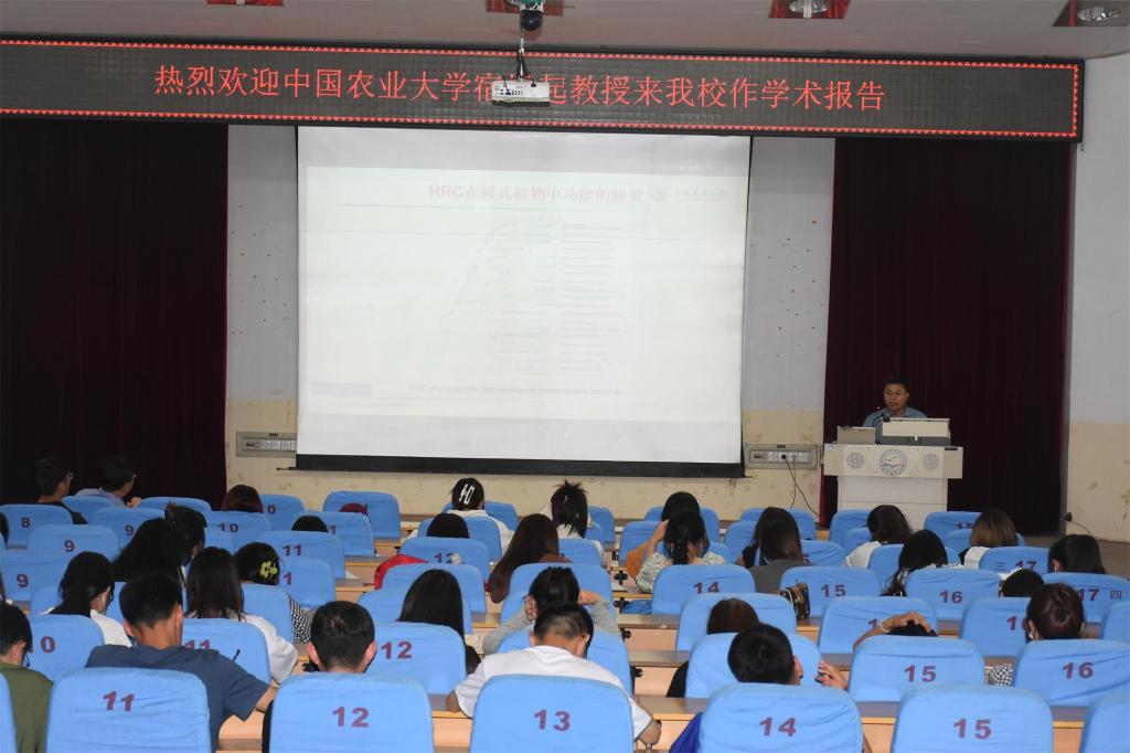 讲座中,宿教授从研究背景、TaHRC生物学功能研究、模式植物HRC抗病研究、TaHRC互作蛋白及功能、赤霉病抗病分子育种五个方面进行了系统的报告,并结合个人经历,对国内外农业科研、分子育种情况进行了分析。
