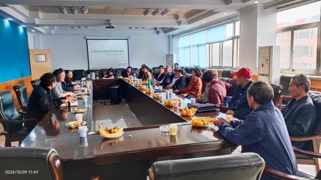 2024年10月9日,我校74级农学专业14位校友回到母校,举行纪念入学50周年聚会。Beat365唯一官方网站为校友举办了欢迎会。