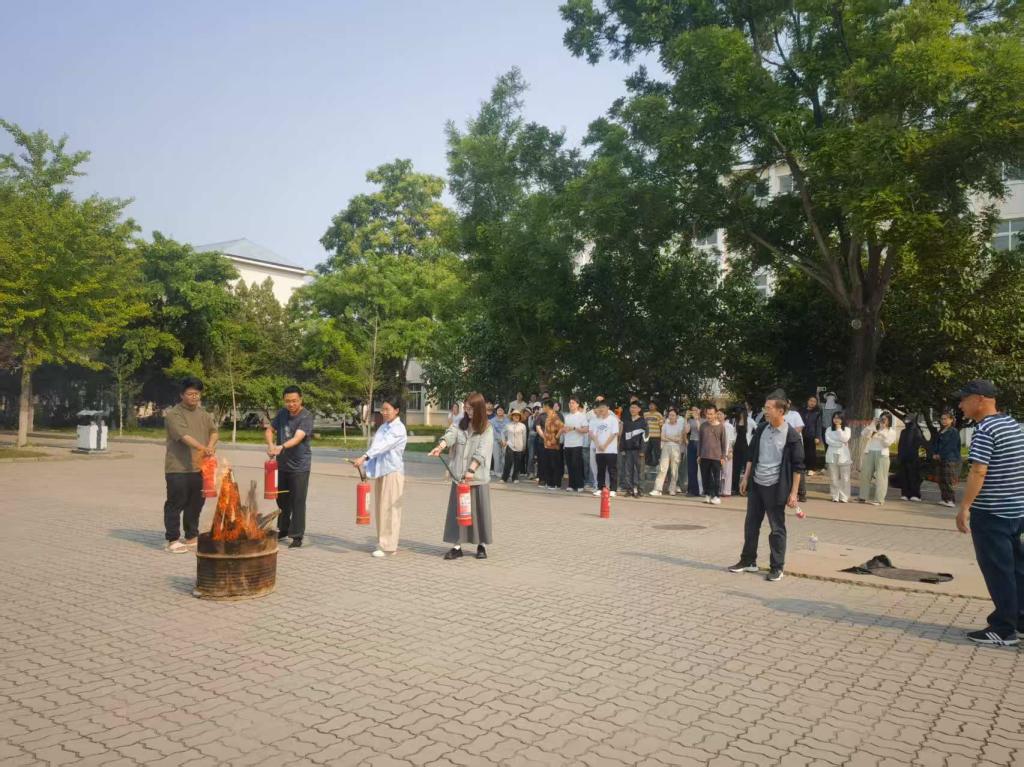 培训会后,在安全保卫处工作人员的具体指导下,与会人员在昌黎校区校医院西侧进行了灭火器使用培训和现场演练活动。工作人员点燃木材,模拟实验室火灾,指导老师和学生正确使用灭火器灭火。通过开展此次应急演练活动,普及了突发事件应急知识,检验了师生实际动手操作使用消防器材的能力,并且提高了师生风险防范意识和自救互救等灾害应对能力。